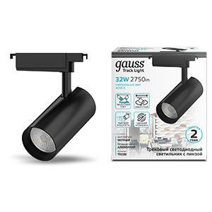 Светильник светодиодный трековый цилиндр 32 Вт 2940 лм 4000К 180-240В IP20 75*216 мм черный линза 36 градусов LED от GAUSS - компактный и яркий источник направленного света для точечной подсветки интерьера. Устройство легко устанавливается на трековые системы, обеспечивает равномерное распределение света и подходит для жилых и коммерческих помещений.