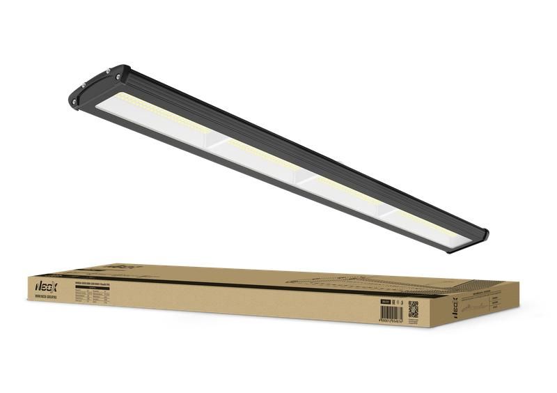 - Линейная форма корпуса позволяет равномерно освещать длинные проходы и стеллажи.