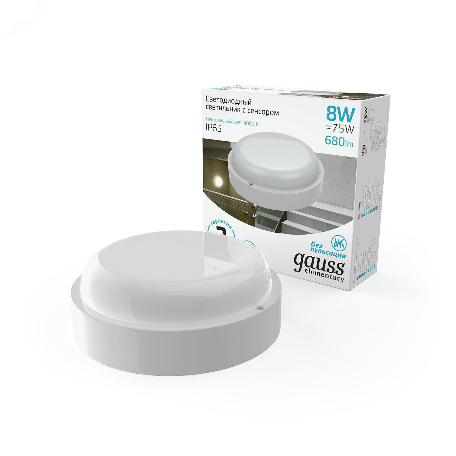 Светильник светодиодный накладной LED ДБП 8 Вт 680 Лм 4000К d140х48 мм IP65 круг с микроволновым датчиком движения включается в темноте Elementary Gauss - 126411208-S предназначен для общего освещения различных помещений. Он идеально подходит для освещения наземных и подземных проходов, проездов, подъездов, лестничных клеток, входных групп, балконов и технических помещений.