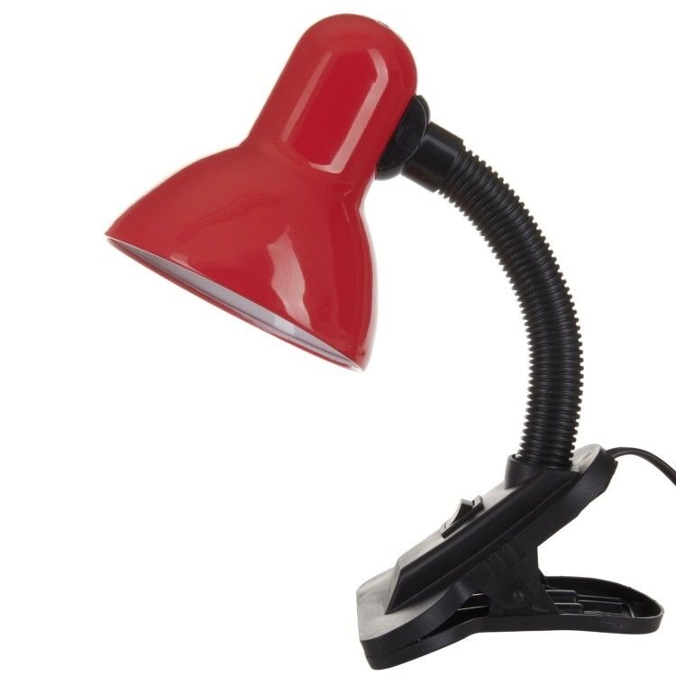 Светильник настольный TLI-202 с цоколем E27 красный крепится прищепкой к краю стола или другому плоскому предмету толщиной до 40 мм. Также есть опциональная подставка - можно установить прямо на поверхность. Гибкая штанга позволяет направлять свет в любую сторону. Для замены лампы достаточно открутить колбу - доступ к цоколю открыт без инструментов. Не используйте лампы мощностью выше 60 Вт - перегрев может повредить патрон и изоляцию.