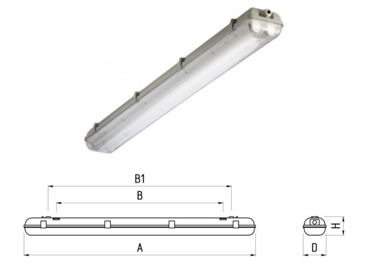 Светильник люминесцентный пылевлагозащищенный TLWP258 PS EL 1563x135x105мм без ламп IP65 прозр | 03055 TechnoLux