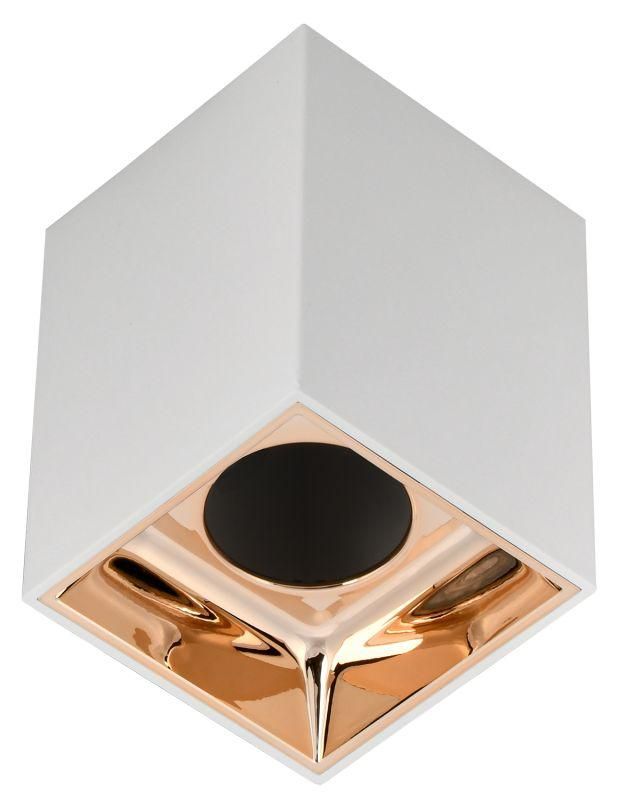 Светильник накладной поворотный 11 Вт GU10 230 В пластик белый/золото IP20 устанавливается на любые плоские поверхности - особенно удобен для натяжных и подвесных потолков. В комплекте есть монтажная скоба, которая обеспечивает надёжную фиксацию. Для установки достаточно просверлить два отверстия под саморезы и зафиксировать устройство. Керамический патрон внутри выдерживает повышенные температуры, что снижает риск перегрева даже при использовании ламп близких к максимуму мощности (11 Вт).