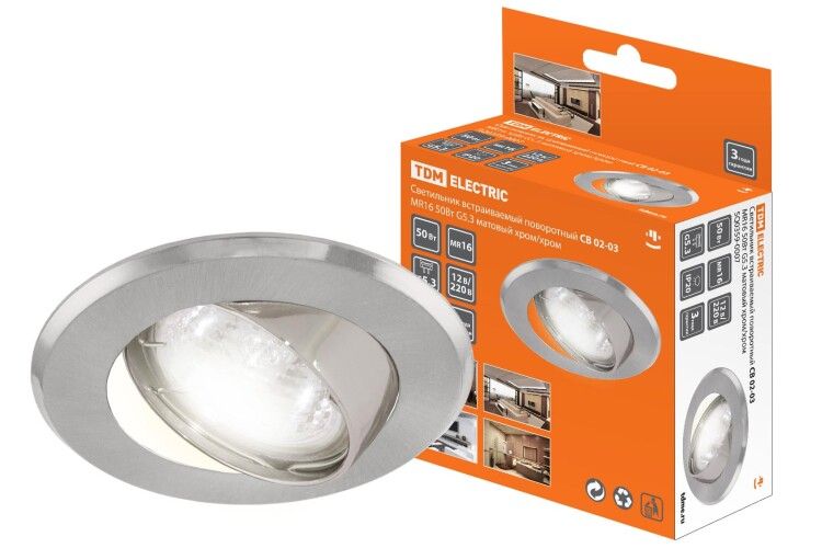 | Светильник точечный встраиваемый под лампу поворотный СВ 02-03 MR16 50Вт G5.3 матовый хром/хром | SQ0359-0007 | TDM | 13.03.2026 | Под заказ | 123,32 ₽ | шт. | от 30 дней |