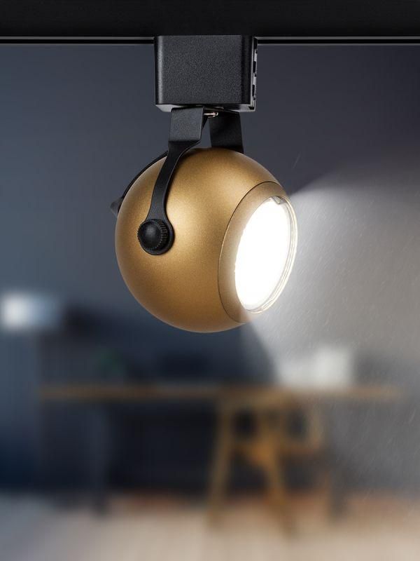 Светильник трековый однофазный TR35-GU10 MG MR16 матовое золото предназначен для монтажа на трековые шинопроводы с питанием 230 В переменного тока. Он используется там, где нужна гибкая и направленная подсветка: выставочные стенды, магазины одежды, музеи, рестораны, жилые интерьеры с акцентными зонами. Подходит для замены старых галогенных ламп с цоколем GU10.