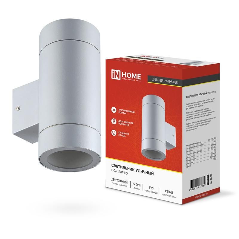 Светильник уличный настенный двусторонний НБУ ЦИЛИНДР-2xGX53-GR алюминиевый серый IP54 IN HOME - 4690612037882
