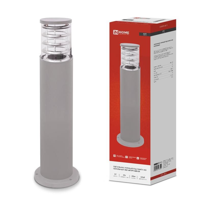Светильник уличный напольный НБУ ART-PT-A60-GR алюминиевый под лампу A60 E27 600мм IP65 сер. IN HOME 4690612048505