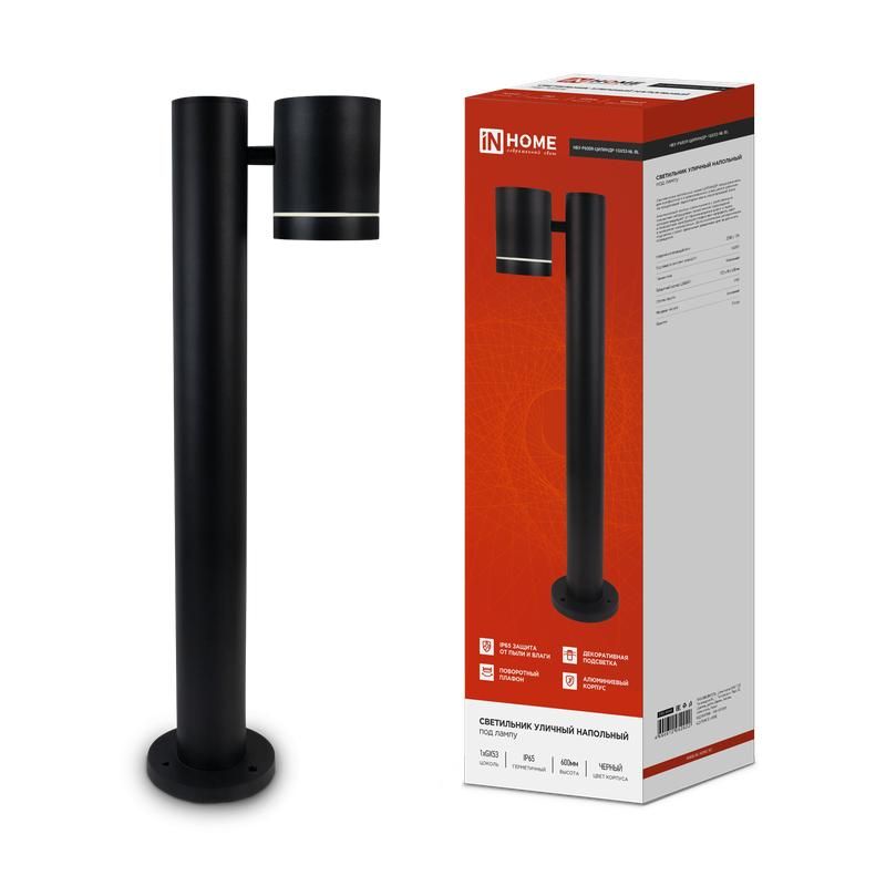 Светильник уличный напольный НБУ P600R-ЦИЛИНДР-1GX53-NL-BL с подсветкой 600мм черный IP54 IN HOME - 4690612052922