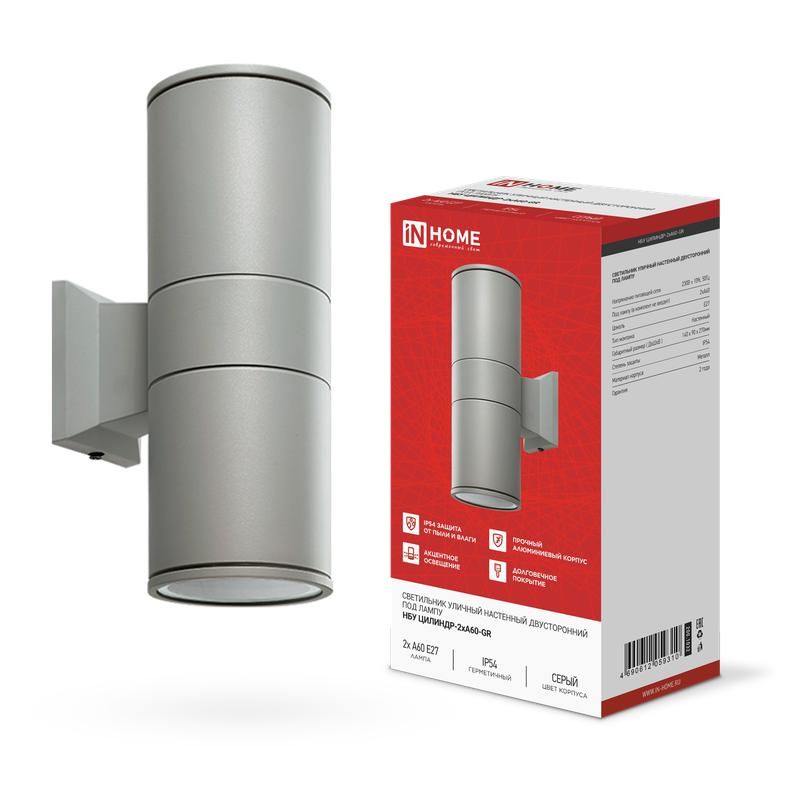 | Светильник НБУ ЦИЛИНДР-2хA60-GR IP54 уличный настен. двусторон. алюм. сер. IN HOME 4690612059310 | 24.02.2026 | 387 шт. | 916,49 ₽ | шт. | от 8 дней |
