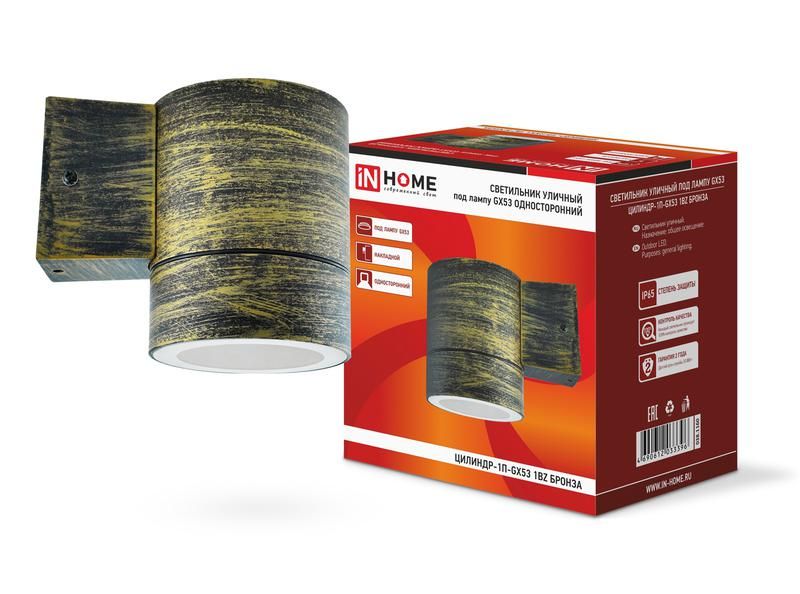Светильник уличный односторонний ЦИЛИНДР-1П-GX53 1BZ пластик под лампу GX53 230B бронза IP65 | 4690612033396 IN HOME не поставляется, возможно товар снят с производства, по запросу, наши инженеры помогут подобрать аналоги, замены.