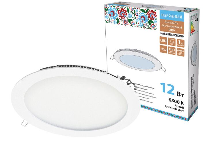 Светильник светодиодный встраиваемый Downlight ДВО Народный СВО (белый) 12Вт 6500К IP20 опал | SQ0329-0242 TDM не поставляется, возможно товар снят с производства, по запросу, наши инженеры помогут подобрать аналоги, замены.