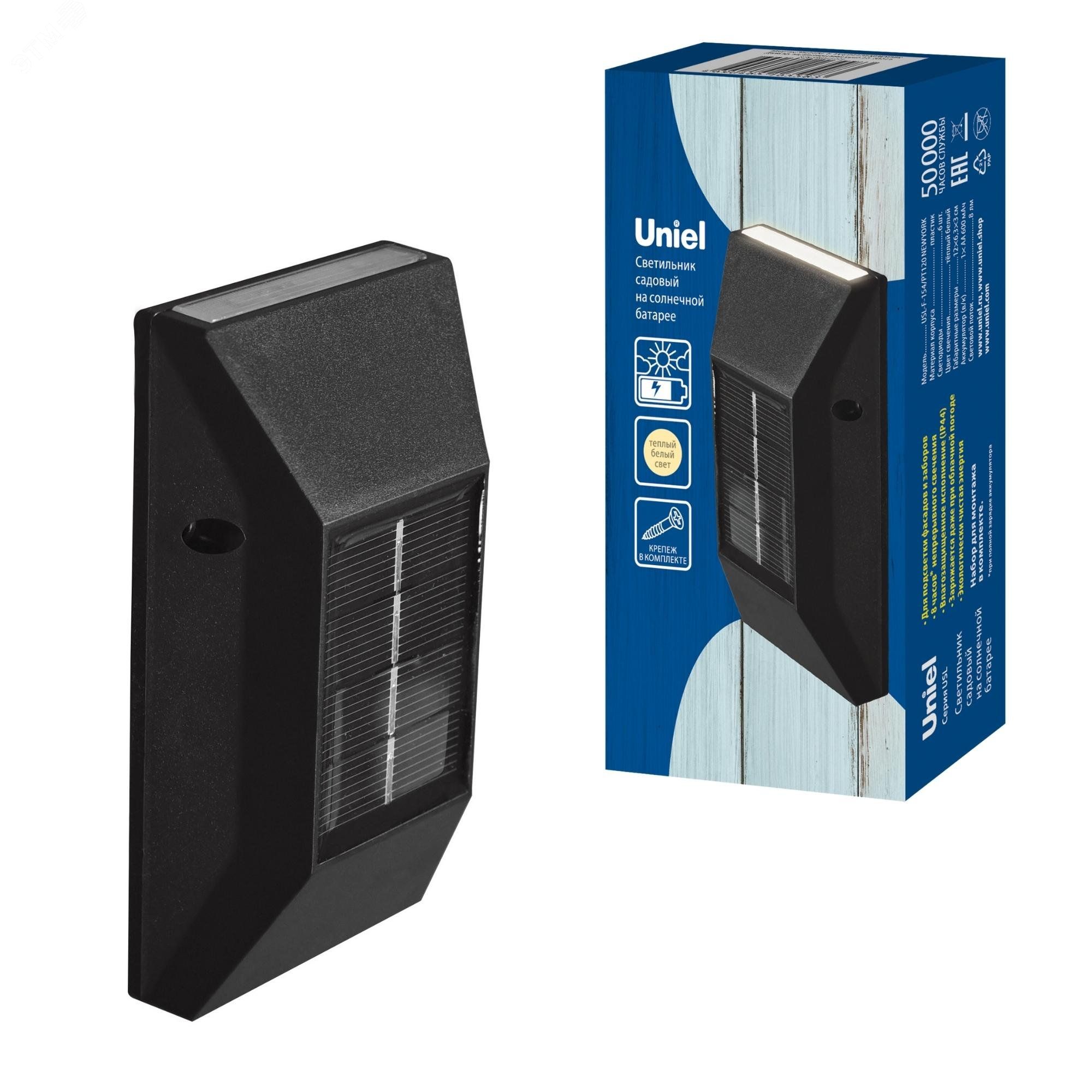 Светильник настенный на солнечной батарее 6 светодиодов 1xAA Ni-Mh аккумулятор IP44 от Uniel (артикул ul-00009370) - автономный источник света для наружной установки, работающий за счет энергии солнца. Подходит для декоративной подсветки фасадов, входных групп и вертикальных поверхностей без подключения к сети.