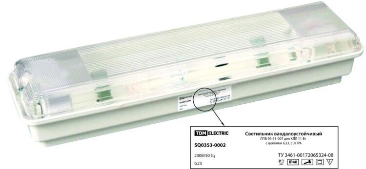 Светильник люминесцентный ЛПБ 96-11-007 вандалоустойчивый 11Вт КЛЛ G23 ЭПРА IP40 | SQ0353-0002 TDM не поставляется, возможно товар снят с производства, по запросу, наши инженеры помогут подобрать аналоги, замены.