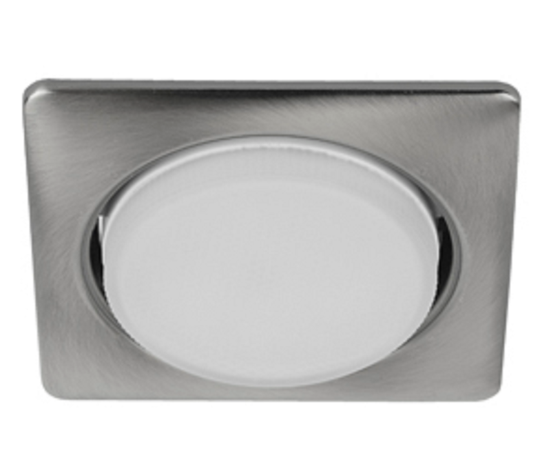 Светильник встраиваемый под лампу GX53 квадратный 220В 13Вт сатин никель соответствует требованиям безопасности для внутреннего использования в сухих помещениях. Степень защиты IP20 исключает возможность использования во влажных зонах (ванная, баня, бассейн, улица). Конструкция выполнена из алюминия, который не поддерживает горение и эффективно рассеивает тепло. Применение лампы мощностью выше 15 Вт запрещено - возможен перегрев и повреждение корпуса.
