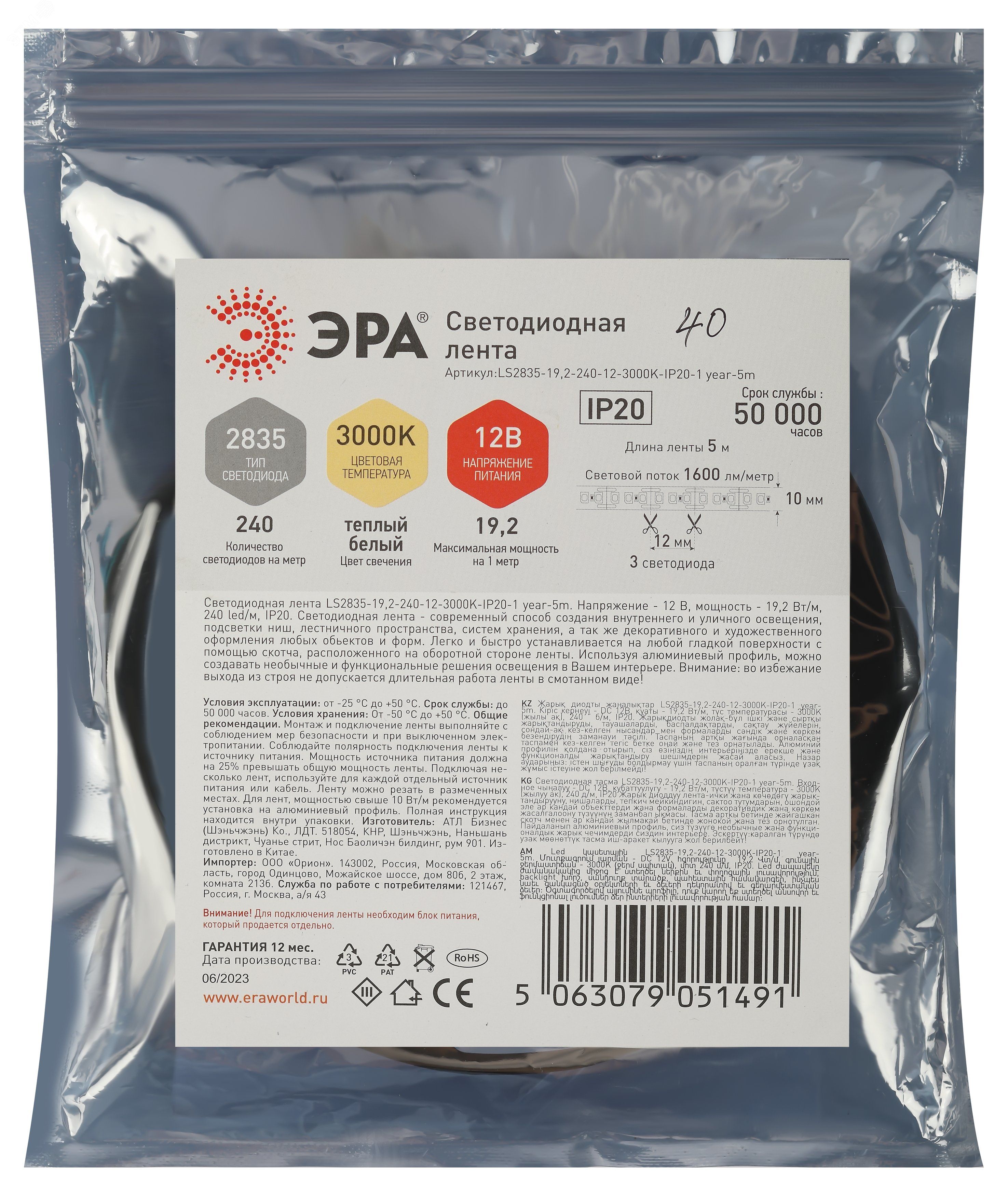 | Лента светодиодная LS2835 -19,2-240-12-3000K-IP20-1 year-5m теплый белый 5м | Б0059906 | ЭРА | 25.02.2026 | 792 шт. | Розничная цена 898,53 ₽ | шт. | от 30 дней |