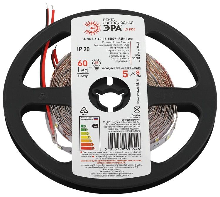 | Лента светодиодная LS2835 6-60-12-6500K-IP20-1 year-5m холод. бел. (уп.5м) Эра Б0053972 | 24.02.2026 | 1 шт. | Розничная цена 296,46 ₽ | уп. 5 м. | от 6 дней |