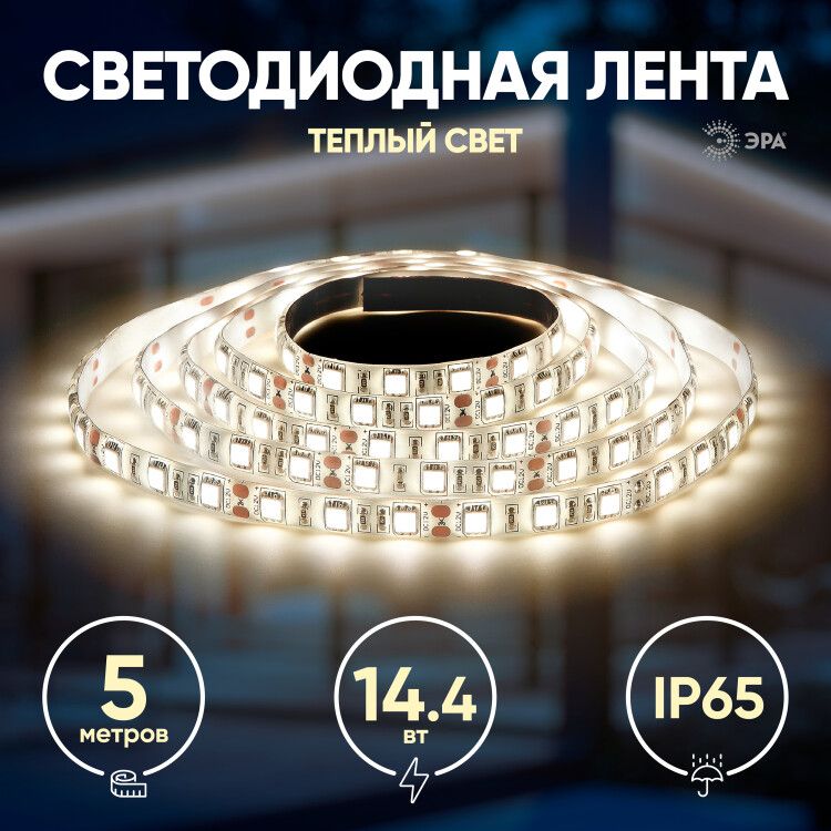 Светодиодная лента LS5050-14,4-60-12-2700K-IP65-2year-5m 12В ЭРА - Б0044117