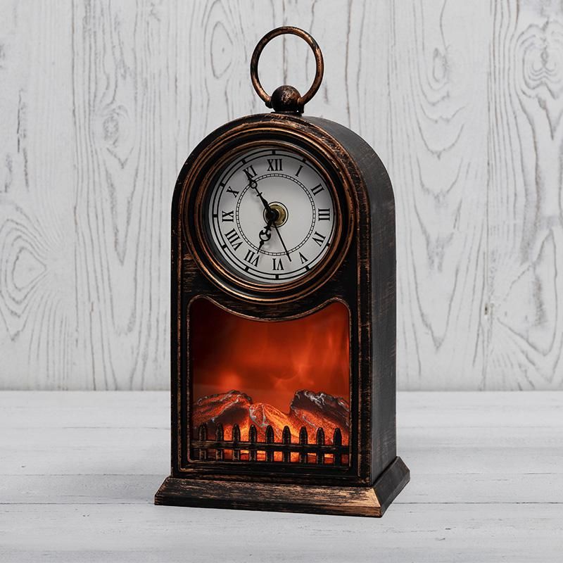 Светодиодный камин Старинные часы с эффектом живого огня 14,7x11,7x25 см, бронза, батарейки 2хС (не в комплекте) USB | 511-021 NEON-NIGHT
