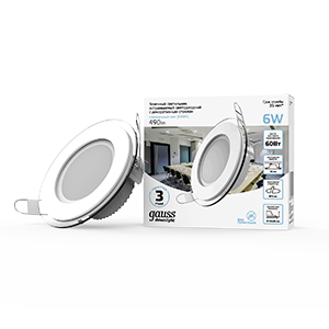 Светодиодный встраиваемый светильник , круглый с декоративным стеклом, 6W 4000K 1/40 | 947111206 Gauss