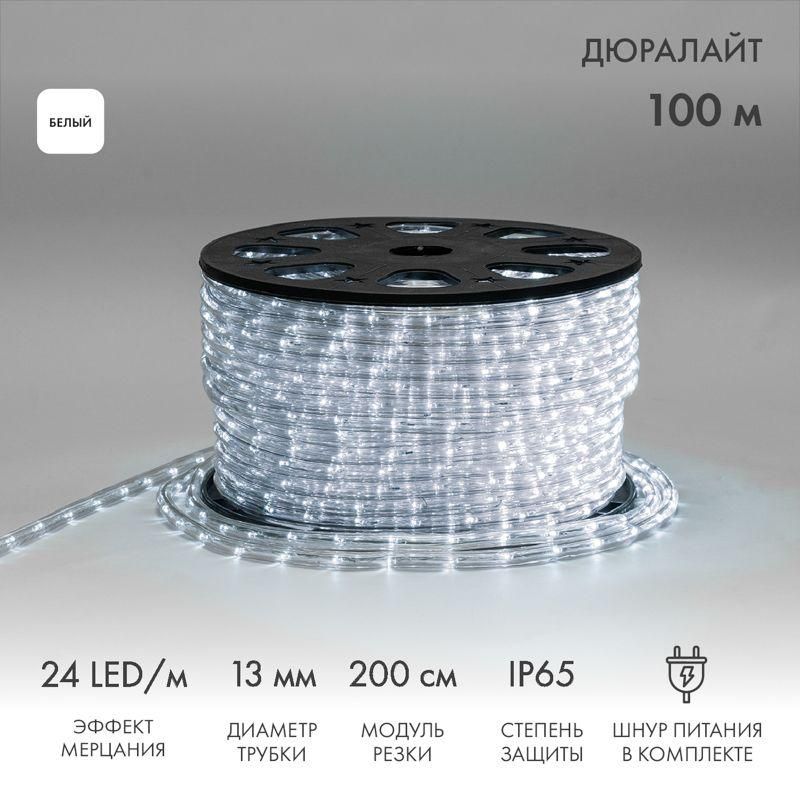 Шнур светодиодный Дюралайт эффект мерцания 24LED/м Эконом бел. (уп.100м) Neon-Night 121-255-4