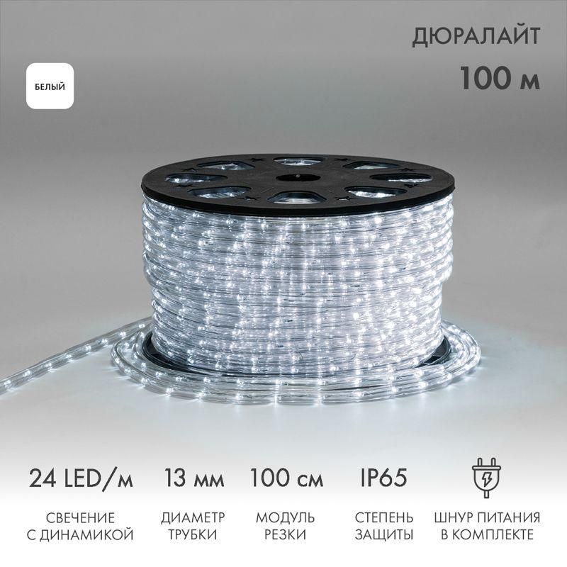 Шнур светодиодный Дюралайт фиксинг круглый 24LED/м Эконом бел. (уп.100м) Neon-Night 121-325-4