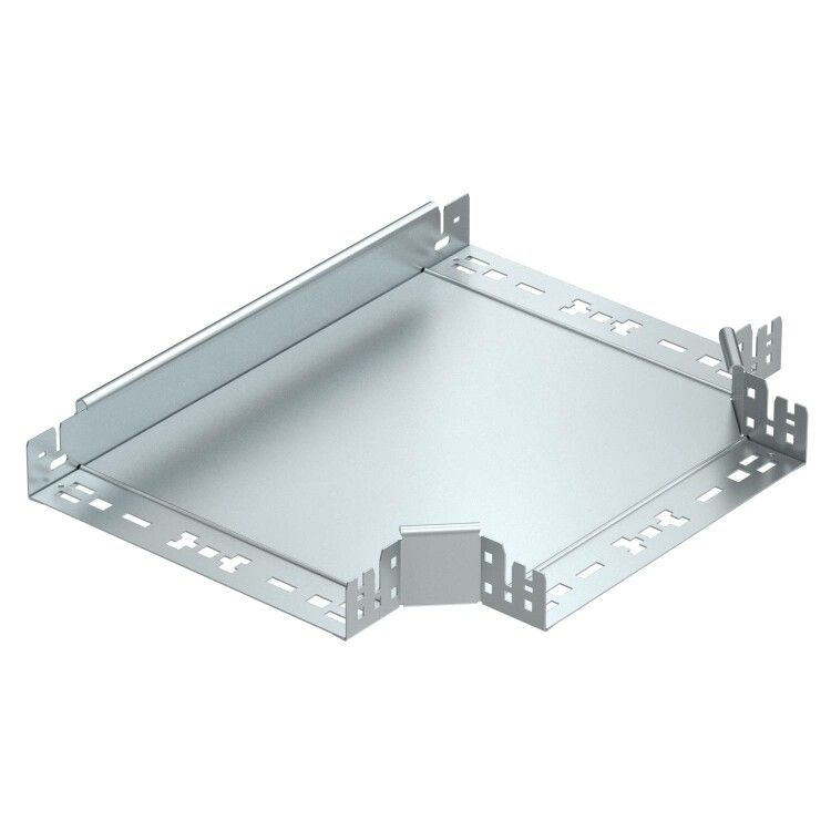 Т-образная секция 60x300 мм совместима исключительно с кабельными лотками, имеющими высоту боковой стенки 60 мм - именно такую высоту предусматривает система соединителей OBO BETTERMANN. Монтаж выполняется без инструментов: лоток просто вставляется в защёлкивающийся соединитель до характерного щелчка. Соединение фиксируется механически, не требует сверления, болтов или заклёпок. Установка возможна как на прямых участках, так и на уже смонтированных трассах.