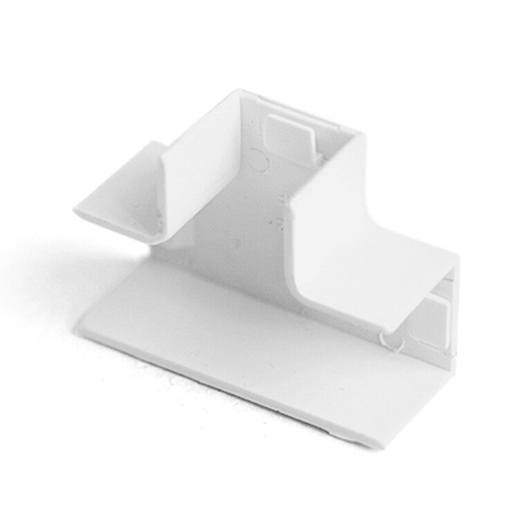 Т-образный угол для кабель-канала 20х10 (4 штуки в комплекте) от бренда ПРОМРУКАВ (арт. pr08.2829) предназначен для создания пересечений кабельных каналов на одной плоскости, обеспечивая аккуратное и быстрое соединение трёх направлений проводки без лишних зазоров.