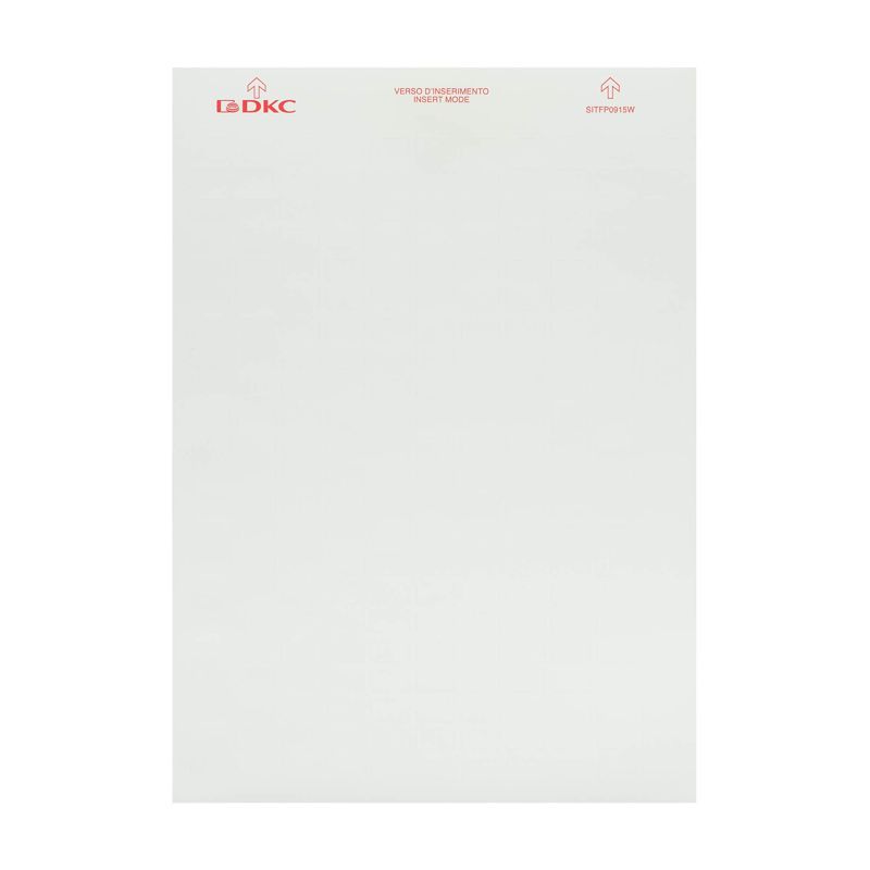 Таблички DKC Mark sitfp0915w подходят для печати на всех лазерных принтерах, поддерживающих плотную бумагу (до 180 г/м²). Перед печатью проверьте настройки принтера - выберите режим “бумага” или “картон”, чтобы избежать заклинивания. После печати табличка легко отделяется от листа и приклеивается к поверхности. Для лучшего сцепления очистите место нанесения от пыли и жира. Клей фиксируется моментально, окончательная адгезия достигается через 24 часа.