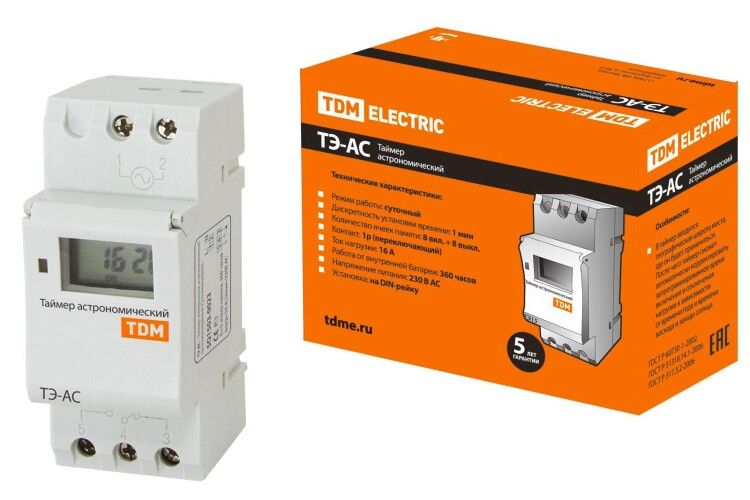 Таймер электронный на DIN-рейку астрономический ТЭ-АС-1мин/24ч-8on/off-16А-DIN - SQ1503-0023 TDM ELECTRIC предназначен для автоматизации управления освещением в промышленных и бытовых электроустановках. Он может использоваться для управления как уличным, так и внутренним освещением.