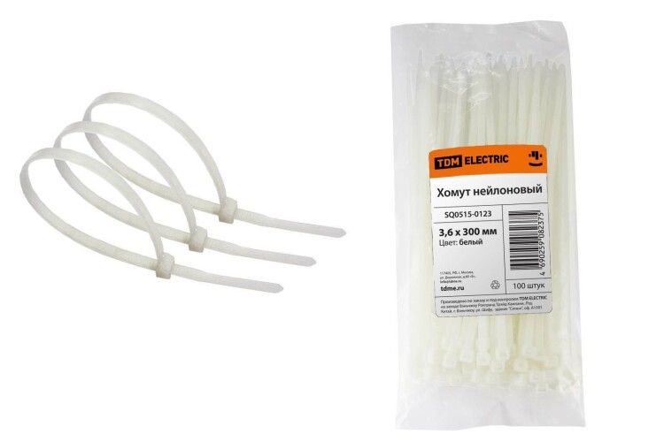 Хомут 3,6х300мм нейлон (белый) (100шт) | SQ0515-0123 TDM