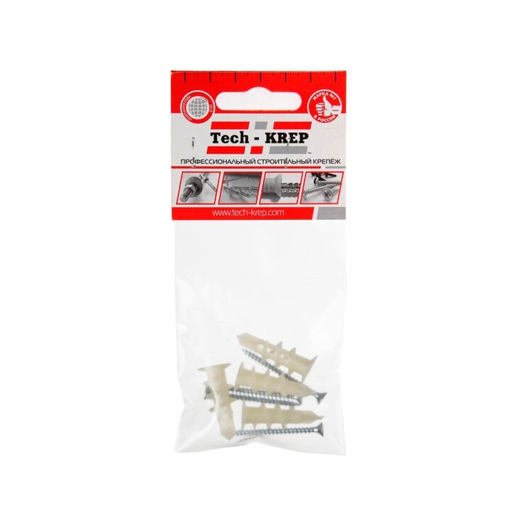 Анкер (дюбель) DRIVA NYLON с шурупом (4 шт) - пакет - это компактный крепёжный набор для быстрого и надёжного монтажа на гипсокартонных листах без необходимости предварительного сверления. Бренд Tech-KREP предлагает этот продукт как решение для лёгких конструкций в условиях ремонта и строительства.