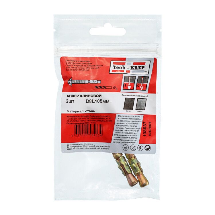- Анкер клиновой 8х105 (2 шт) - пакет от Tech-KREP - идеальный выбор для проектов, где важны цена, скорость и надежность