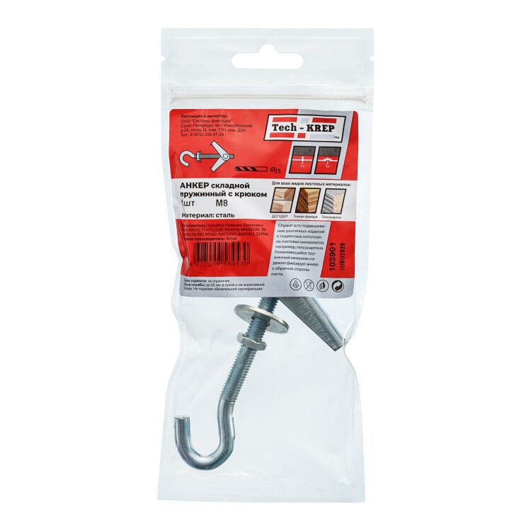 Анкер складной пружинный с крюком М8 (1 шт) - пакет ( 0,069 кг) | 103901 Tech-KREP
