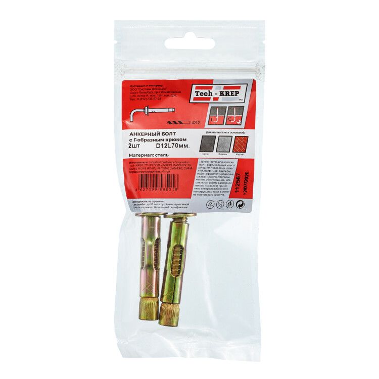 | Анкерный болт с Г-обр. крюком HL 12x70 (2 шт) - пакет ( 0,162 кг) | 112567 | Tech-KREP | 13.03.2026 | Под заказ | 133,01 ₽ | уп. | от 30 дней |