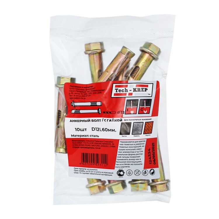 | Анкерный болт с гайкой 12х60 (10 шт) - пакет ( 0,519 кг) | 124334 | Tech-KREP | 16.03.2026 | Под заказ | 256,15 ₽ | уп. | от 30 дней |