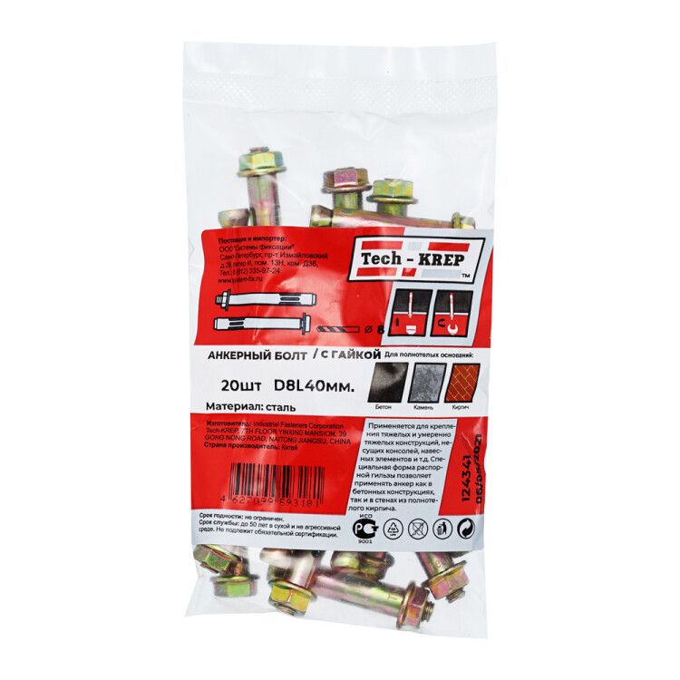 | Анкерный болт с гайкой 8х40 (20 шт) - пакет ( 0,259 кг) | 124341 | Tech-KREP | 16.03.2026 | Под заказ | 167,18 ₽ | уп. | от 30 дней |