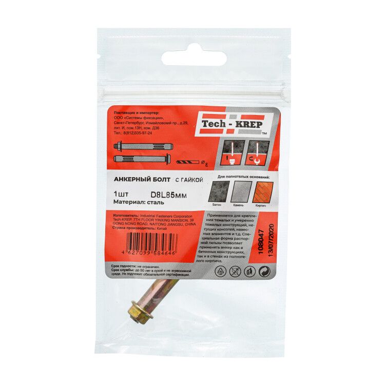 Анкерный болт с гайкой 8х85 (1 шт) - пакет ( 0,031 кг) | 108047 Tech-KREP