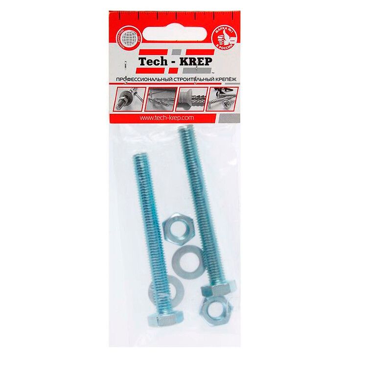 Болт DIN933 8.8 с шестигранной головкой оцинк. М12х120 + гайка шайба (2 шт) - пакет ( 0,248 кг) | 136929 Tech-KREP