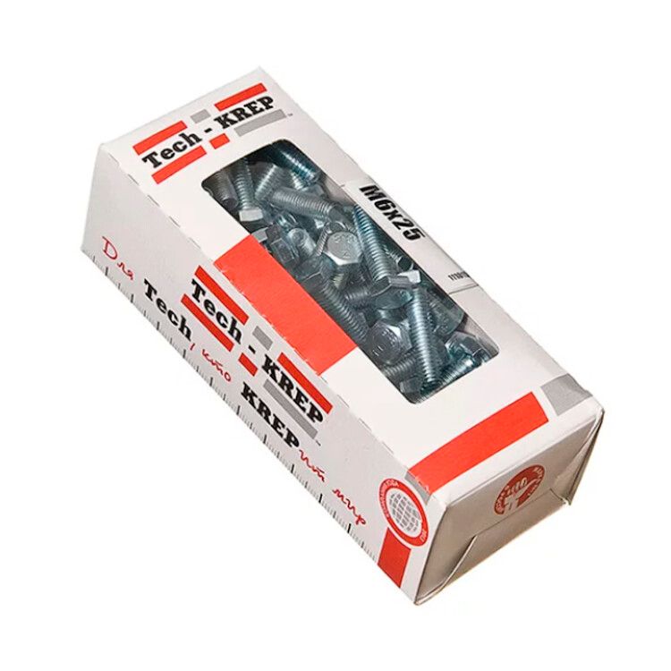 Болт DIN933 с шестигранной головкой оцинк. М6х25 (70 шт) - коробка ок. Tech-Kr ( 0,472 кг) | 105202 Tech-KREP