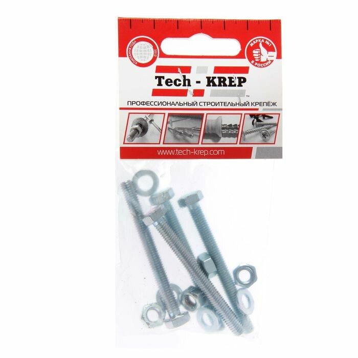 Болт DIN933 с шестигранной головкой оцинк. М6х60 + гайка шайба(4 шт) - пакет ( 0,066 кг) | 112720 Tech-KREP