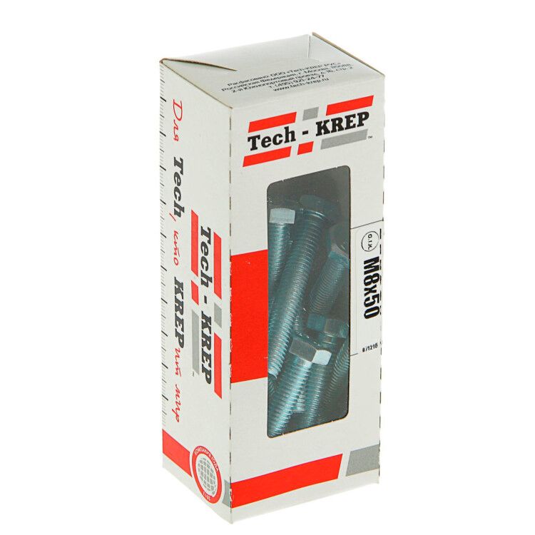 Болт DIN933 с шестигранной головкой оцинк. М8х50 (20 шт) - коробка ок. Tech-Kr ( 0,438 кг) | 105211 Tech-KREP