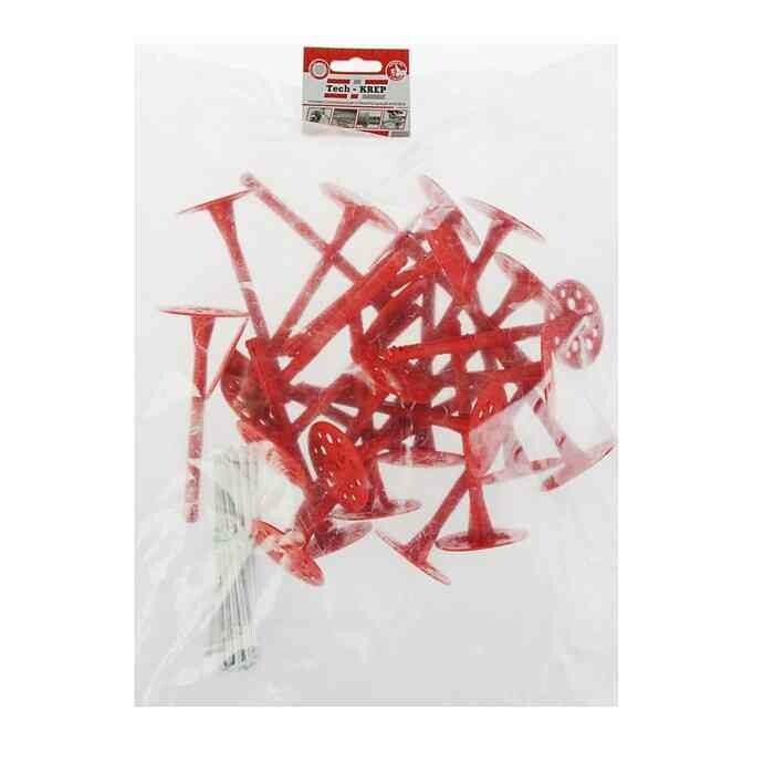 Дюбель для теплоизоляции с металлическим гвоздём 10x140 (25 шт) от Tech-KREP (артикул 101705) предназначен для надёжного крепления теплоизоляционных плит к жестким основаниям - бетону, кирпичу и ячеистому бетону. Комбинированная конструкция из пластикового дюбеля и цинкованного гвоздя обеспечивает устойчивость к коррозии и высокую механическую нагрузку.
