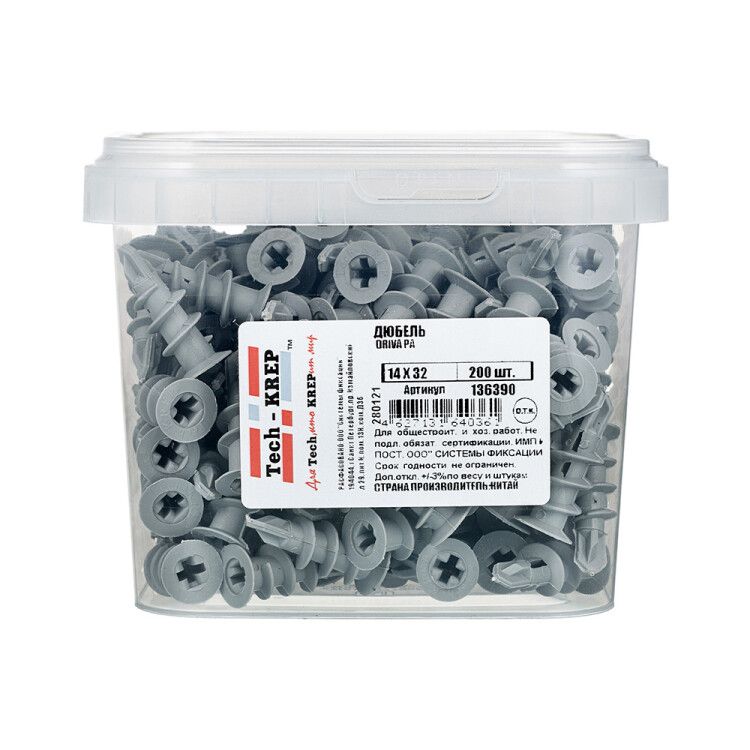 Дюбель DRIVA PA 14X32 (200шт) - ведро ( 0,205 кг) | 136390 Tech-KREP