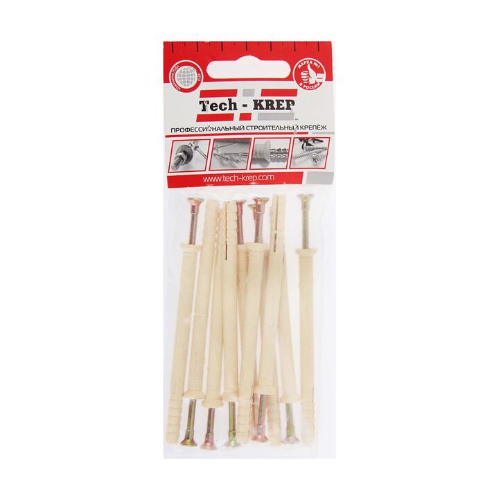 Дюбель-гвоздь Tech-KREP 102937 - надежный крепеж для сквозного монтажа в плотных основаниях, сочетающий прочный нейлоновый дюбель с цинкованным гвоздём и потайной манжетой для эстетичного крепления.
