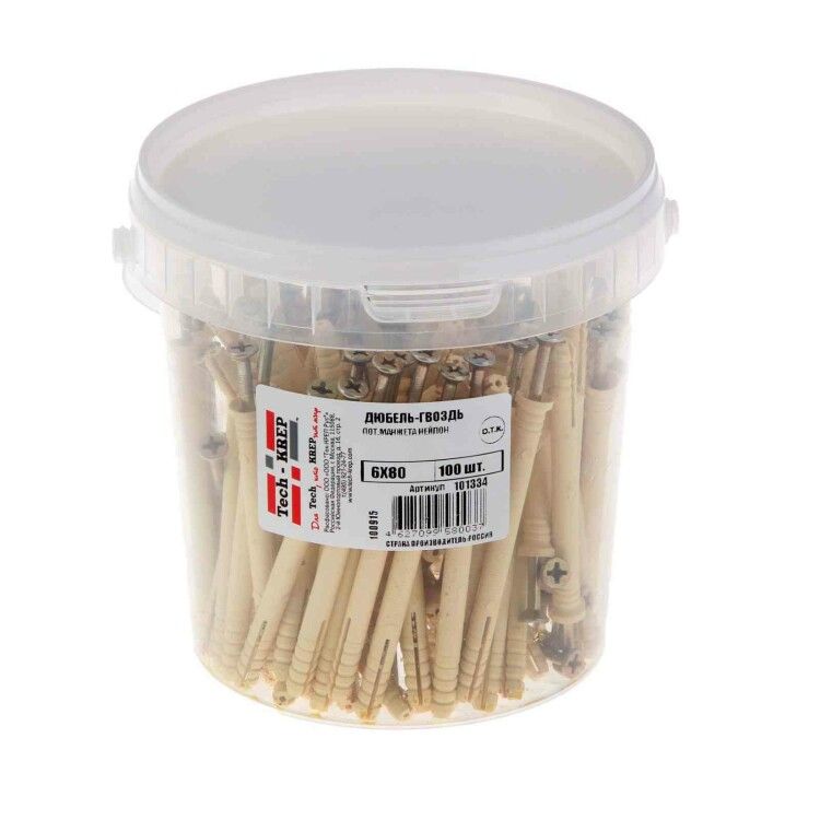 | Дюбель-гвоздь 6K80 пот. манжета (нейлон) (100 шт) - ведро ( 0,683 кг) | 101334 | Tech-KREP | 29.01.2026 | 36 уп. | 651,05 ₽ | уп. | от 30 дней |