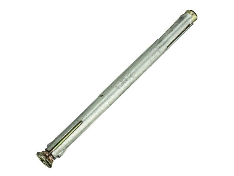 Дюбель металлический рамный 10х132 (2 шт) – пакет требует предварительного сверления отверстия диаметром 10 мм и глубиной 137 мм. После установки в него вворачивается входящий в комплект винт - он затягивает внутреннюю конусную гайку, расклинивая втулку с прорезями внутри отверстия. Это создаёт плотное, жесткое крепление. Для работы нужна дрель с перфоратором и бур соответствующего диаметра. Монтаж допускается в сухих помещениях и на улице - покрытие цинком защищает от влаги.