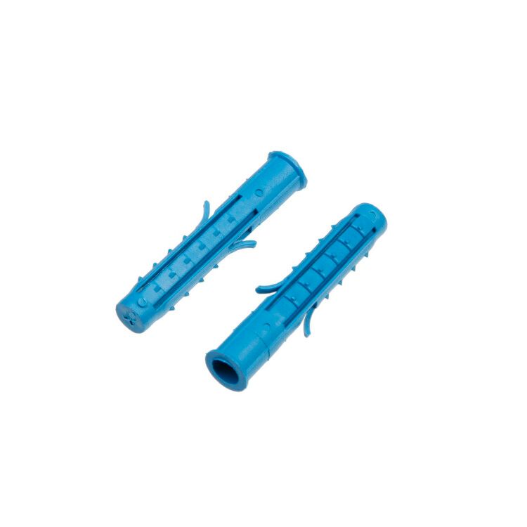 Дюбель распорный 10х60 шипы+усы (синий) (250 шт) совместим с саморезами и шурупами диаметром 6–8 мм с головкой под квадрат или шестигранник. Для установки требуется просверлить отверстие диаметром 10 мм и глубиной 60 мм. После вставки дюбеля в отверстие в него закручивается винт - распорная часть раздвигается, а шипы и усы врезаются в стенки отверстия, фиксируя деталь. Установка выполняется обычным шуруповертом или отверткой. Буртик позволяет контролировать глубину вхождения.