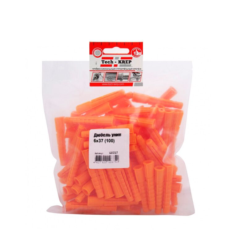 Дюбель универсальный 6х37 без бортика (100 шт) - пакет ( 0,08 кг) | 124450 Tech-KREP