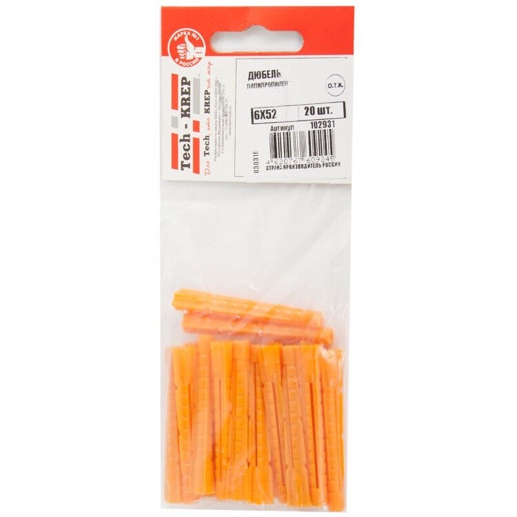 Дюбель универсальный 6х52 без бортика (20 шт) - пакет ( 0,018 кг) | 102931 Tech-KREP