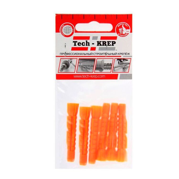 - Дюбель универсальный 6x52 полипропилен, без бортика (6 шт) от Tech-KREP - хорошее решение для массовых работ, где важна скорость и надежность, а не максимальная нагрузка