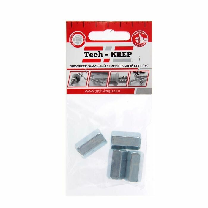 Гайка соединительная DIN 6334 удлиненная оцинкованная М8 (4 шт) пакет - это компактный крепёжный элемент для наращивания резьбовых участков шпилек, болтов и анкеров. Бренд Zitar, Tech-KREP и Тех-КРЕП выпускают эту гайку в стандарте DIN 6334, обеспечивая надёжное соединение в условиях повышенной нагрузки и влаги.